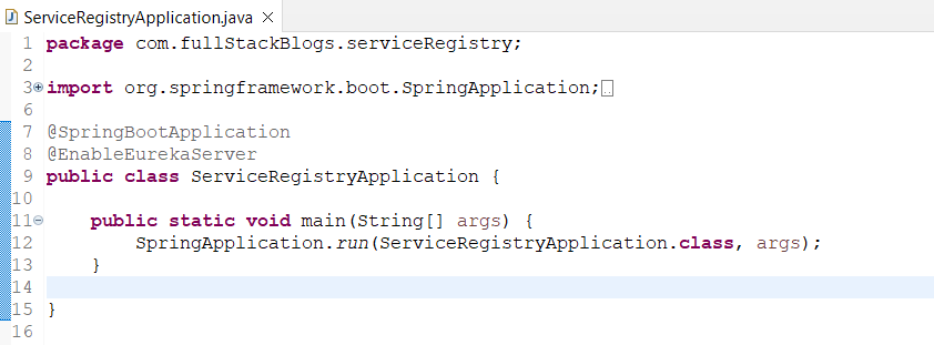 Step 2: EnableEurekaServer on mainClass of Service Registry Service