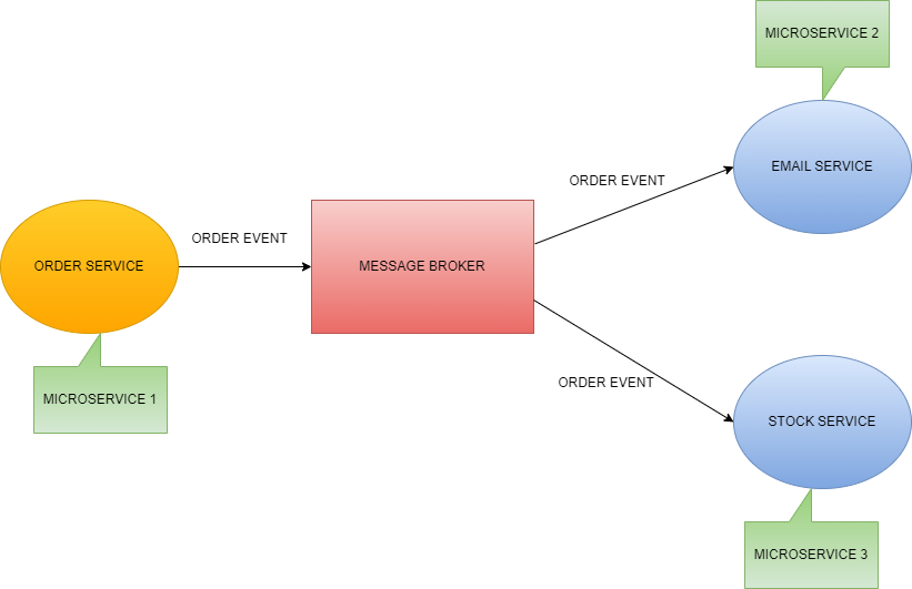 Let us suppose as above screenshot when any user ordered some product. So in real time send notification and update the stock of the product. Here we are creating 4 microservices.