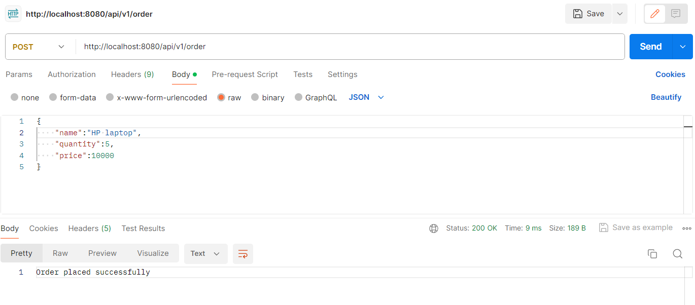 Request Body:-  {“name”: “HP laptop”,”quantity”: 5,”price”: 10000}